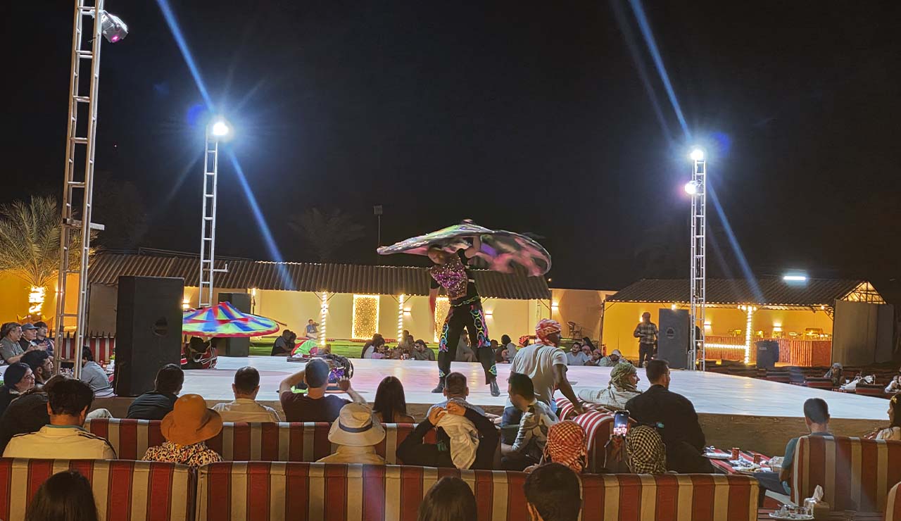 You experience an exhilarating combination of adventure and excitement covered in the enticement of the desert. Your experience starts with an exhilarating dune bashing ride over golden sand dunes, then a leisurely camel trek, and professional sandboarding is included. As the sun goes down, return to our authentic Bedouin camp for a lavish 5-star BBQ buffet dinner, an exotic belly dancer show, and fire shows under the starry desert sky. We ensure an exciting and stress-free experience with the inclusion of round-trip hotel transfers and professional guides. Book your 2026 desert tour now!